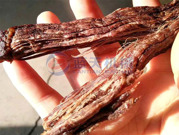 將肉條懸掛好在風(fēng)干室進(jìn)行風(fēng)干或新型熱泵牛肉干烘干房內(nèi)選擇智能風(fēng)干模式。注意:肉條不能滴水,要掛直,相互不要粘連、肉條與肉條之間保留一點(diǎn)距離,以利于通風(fēng)透氣,干燥均勻。一般在溫度40℃,溫度約60%左右的室內(nèi)環(huán)境下,36小時(shí)即可干燥一批。這時(shí)可見牛肉顏色暗紅,手捏感覺干燥且微硬。